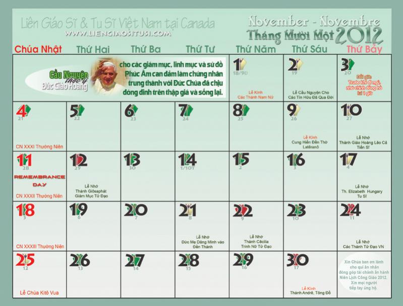 Ðề tài: Lịch phụng vụ tháng 11/2012