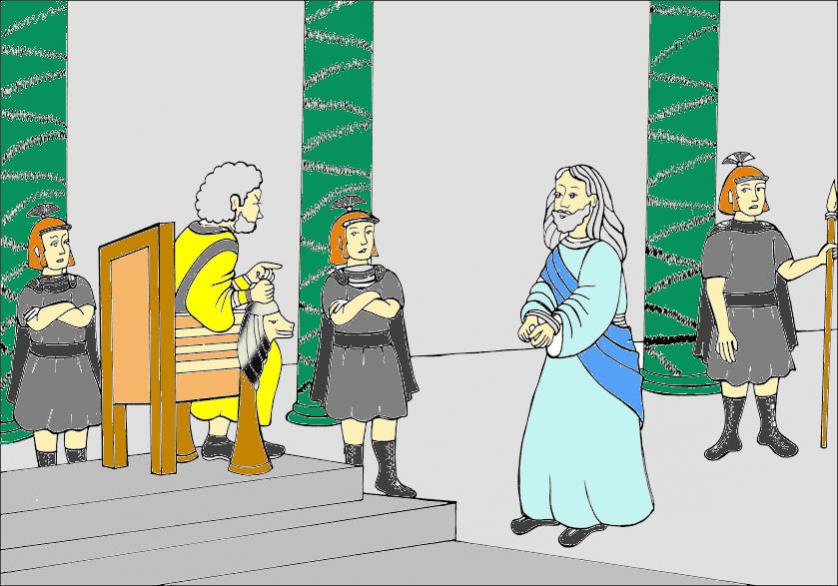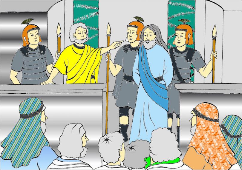 Pilatus entgegnete: Bin ich denn ein Jude? Dein eigenes Volk und die Hohenpriester haben dich an mich ausgeliefert. Was hast du getan?