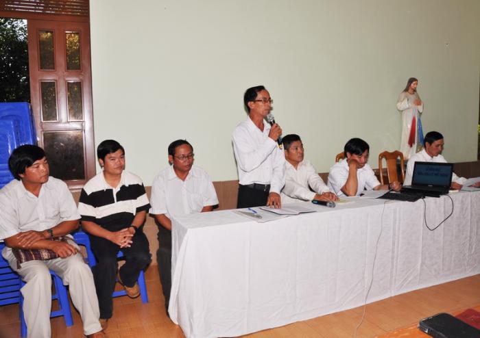 Tới dự buổi khai giảng còn có cha Phêrô Cao Tiến Hà, trưởng ban, cha Antôn Nguyễn Văn Huynh, phó ban giáo lý, và Ban Điều Hành GLV hạt Quảng Đức.