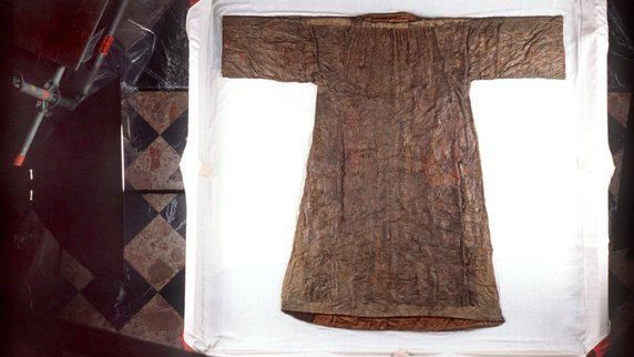 Phúc âm Thánh Gioan thuật lại về tấm áo sau cùng của Chúa Giêsu: “Ðóng đinh Ðức Giêsu vào thập giá xong, lính tráng lấy áo xống của Người chia làm bốn phần; họ lấy cả chiếc áo dài nữa. Nhưng chiếc áo dài này không có đường khâu, dệt liền từ trên xuống dưới. (24) Vậy họ nói với nhau: "Ðừng xé áo ra, cứ bắt thăm xem ai được". Thế là ứng nghiệm lời Kinh Thánh: Áo xống tôi, chúng đem chia chác, còn áo dài, cũng bắt thăm luôn.“ (Ga 19,23).