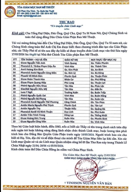 Xin chúc mừng quý Ông bà cố và 5 gia đình của các Phó tế Vinh Hòa & Tân Hòa Giáo phận BMT.