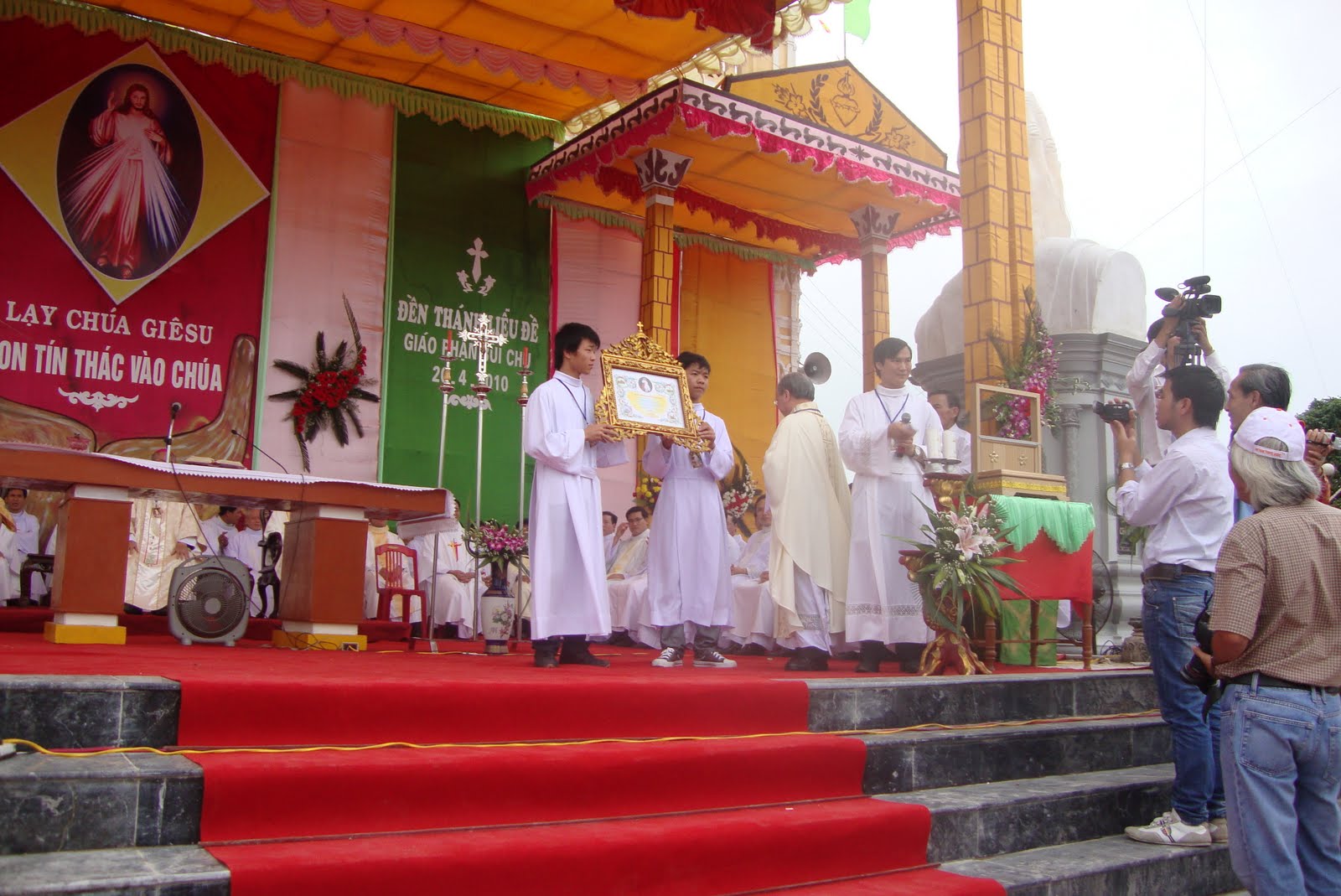 Sáng nay, 06/02/2011 (mồng 4 Tết), Đức cha Phê rô Nguyễn Văn Đệ, Giám mục giáo phận Thái Bình chủ sự thánh lễ tạ ơn và cắt băng khánh thành nhà thờ Lòng Thương Xót Chúa giáo họ Đông Thọ, thuộc giáo xứ Thái Sa.