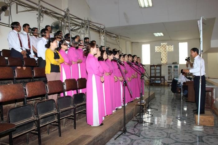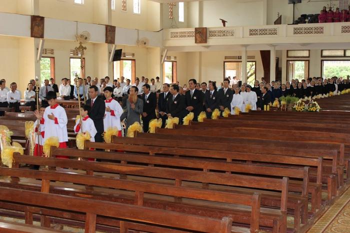 · Xin Cộng đoàn vào cửa chính trước sảnh và ngồi vào hai dãy ghế giữa