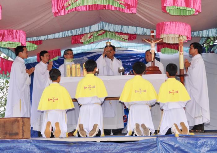 “Anh em đã được sống lại cùng với Đức Kitô, nên hãy tìm kiếm những gì thuộc thượng giới, nơi Đức Kitô đang ngự bên hữu Thiên Chúa” (Cl 3:1) cha quản xứ Phaolô Nguyễn Công Minh dẫn lời kinh nguyện và ngài cảm ơn các trại sinh, đặc biệt các giáo xứ bạn đã đến tham dự Hội trại với giới trẻ Vinh Hương, sau đó ngài cùng với cha phó xứ Phêrô Cao Tiến Hà tuyên bố khai mạc. Cùng đến với buổi khai mạc có quý cha Giuse Trần Thế Thành, quản xứ Thổ Hoàng, cha Giuse Bùi Văn Trường quản xứ Xuân Lộc, cha Antôn Nguyễn Văn Huynh, giáo họ Thiên Phước, giáo xứ Gia Nghĩa, cha Gioan Baotixita Nguyễn Tuấn Đạt phó xứ Bác Ái, Ban thường vụ HĐGX và đại diện các hội đoàn trong giáo xứ.