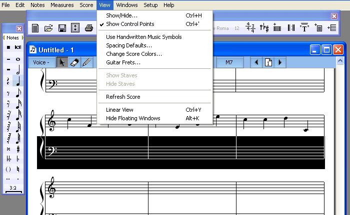 Em cứ việc bôi đen dòng nhạc muốn xóa, sau đó xổ View, rồi click vào Hide Staves. Dòng nhạc sẽ được giấu đi. Vui nhé! |