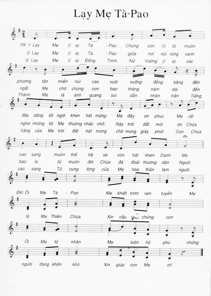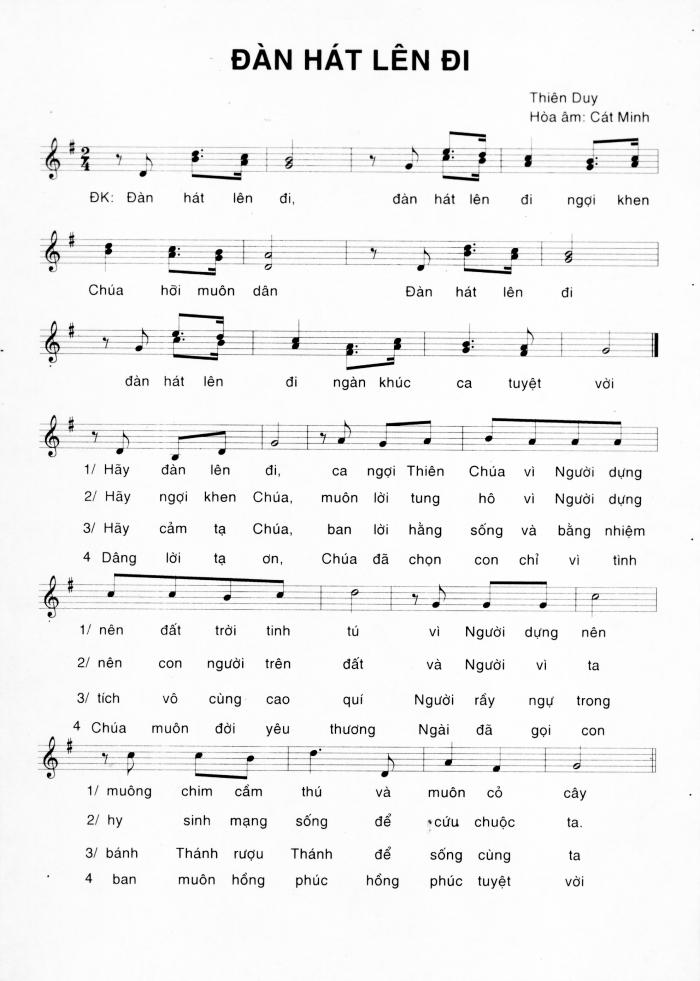 Xin giới thiệu đến quý Cha và toàn thể quý vị một số bài hát đã được giáo quyền chuẩn thuận và cho phép sử dụng trong phụng vụ. Hôm nay xin phép được gửi lên diễn đàn TCVN trước 2 bài : bài Đàn hát lên đi và bài Lạy Mẹ Tà Pao. |