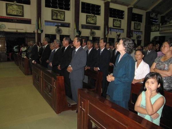 Cha Phụ Tá mở đầu Thánh lễ bằng nụ cười và những lời nói chân tình: “Đây là lần đầu tiên kể từ khi tôi được nhận chức Giám mục, tôi mới đến đây thăm anh chị em được. Tôi không biết nói tíêng Hoa, chỉ biết nói tiếng Việt thôi, anh chị em nghe có hiểu tôi nói những gì không?” Cộng đòan vài người cười và nói với Đức Cha: “Hiểu, dạ hiểu ạ!” Thánh lễ bắt đầu trong tâm tình giữa người mục tử và đòan chiên thảo hiếu.