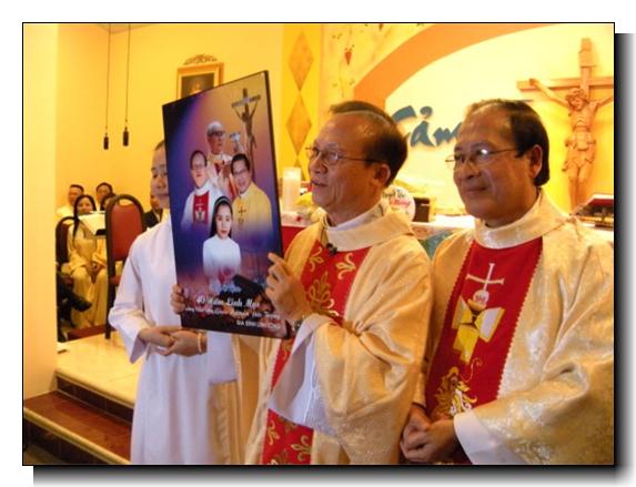 LAS VEGAS - Thứ Bảy ngày 30 tháng 5 năm 2009: Trong tâm tình hân hoan ngập tràn cảm mến, biết ơn, ngưỡng mộ, gần 20 linh mục và hơn 500 giáo dân từ mọi nẻo đường đất nước về đây hiệp dâng Thánh Lễ Tạ Ơn cùng linh mục Giuse Nguyễn Đức Trọng, Giám-Đốc Đền Thánh Mẹ La-Vang để dâng lời cảm tạ Chúa qua Mẹ đã che chở, gìn giữ ngài trong 40 năm linh mục được vuông tròn trong chúc vụ và nhiệm vụ phục vụ Chúa và Giáo Hội cùng giáo dân. Sau Thánh Lễ là Tiệc Mừng rất thịnh soạn ngay tại Đền Thánh với 560 thực khách và những tiết mục văn nghệ giúp vui rất tuyệt vời với sự góp mặt ca đoàn La Vang, các em Thiếu Nhi Thánh Thể và Giáo Lý Việt Ngữ, Cha Joseph Đồng Minh Quang, MC, cha Tiến Linh, ca sĩ Kim Thuý v.v.